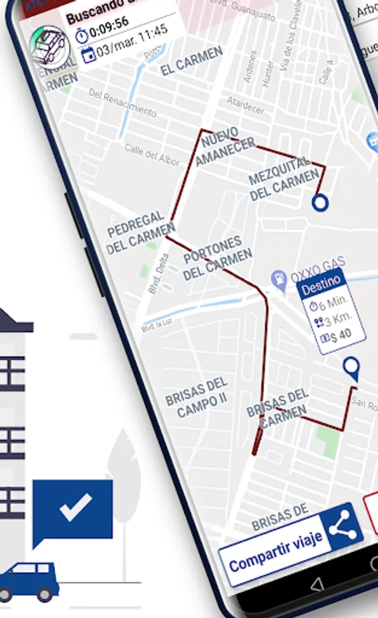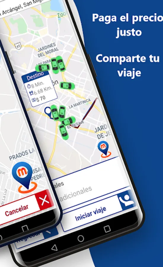 Open the application >> Set your destination >> Check rate >> Press the button to start.