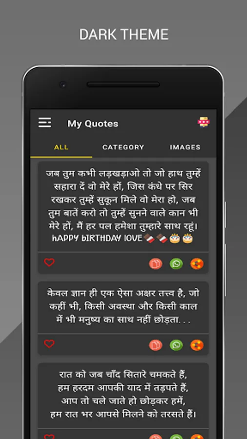 You can also share directly in WhatsApp, in addition to many social messaging apps, you will be able to share favorite Quotes and Shayari directly with the help of this application.