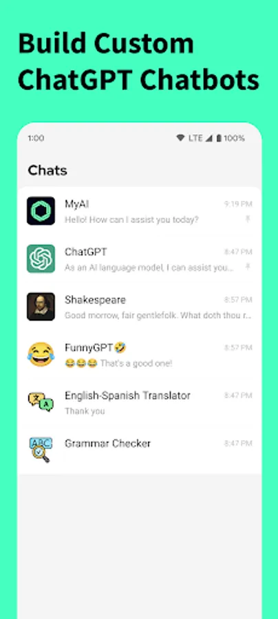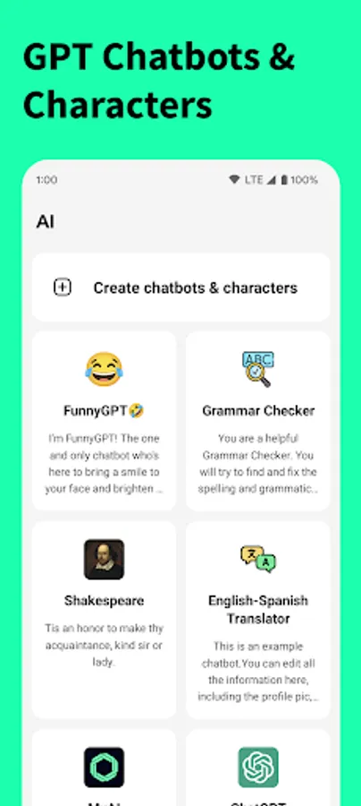 Download the AI chatbot app and start building & chatting with your own GPT chatbots & characters now!