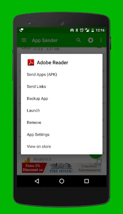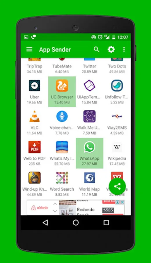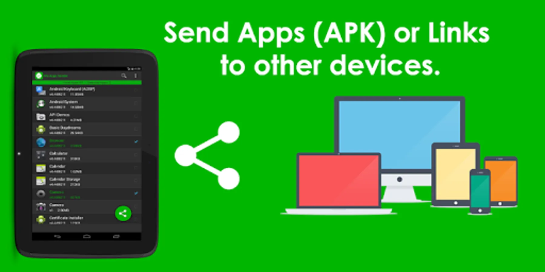 - Send apps to other devices via Bluetooth, Wi-Fi etc.