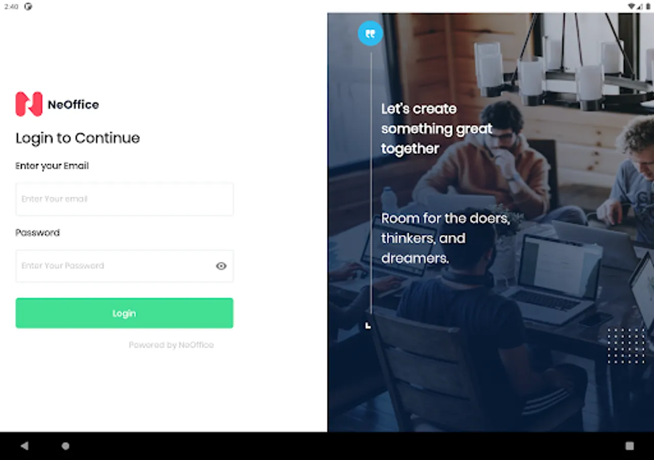 NeoConf is a Meeting Room Display App that is customizable and simple to use. This is a companion app of Neoffice, our Hybrid Office Automation Solution, and is available on both Android and iOS. The app needs to be installed in the device which will be placed outside the meeting room.