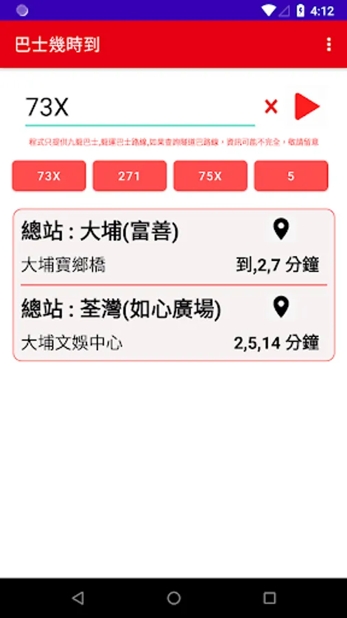 Just enter the bus route, the program will automatically search for the user's nearest location, the location of the bus stop, and the arrival time, and will remember the bus route the user has searched.