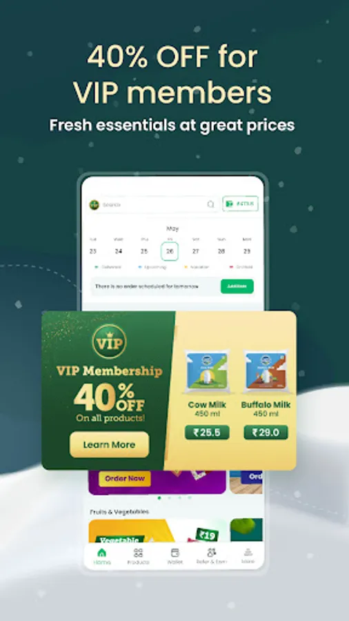 Online grocery shopping has never been this rewarding. Both for your wallet and your health! Grab daily price drops on freshly harvested fruits and vegetables, pollachi sourced tender coconut water, freshly made flavoured yogurts, and naturally tasty Milk. With our VIP membership, you can get 40% Off on all farm-fresh products.