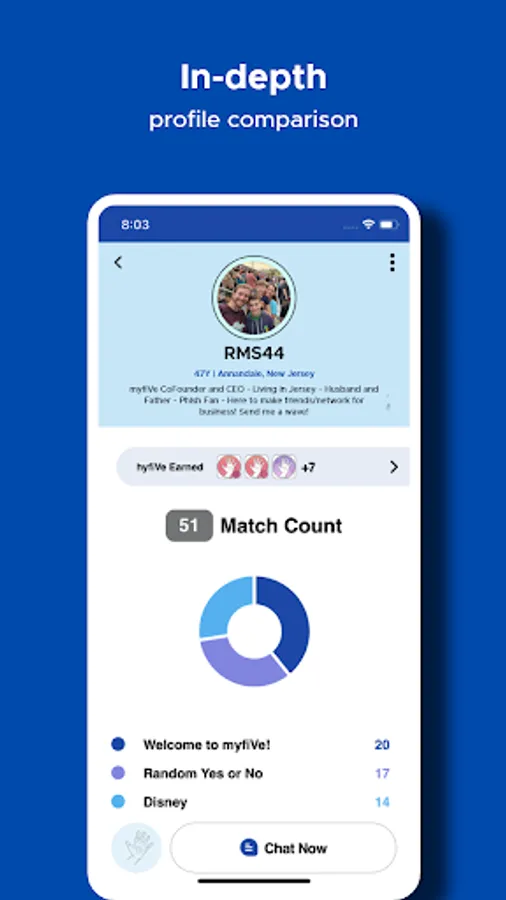 Meeting people online is no longer based just on looks or a short bio like many other social meeting apps but instead it’s now based on mostly knowing how similar another myfiVer is before you even say hello! It’s the perfect online icebreaker for meeting people and its Fun To Do!