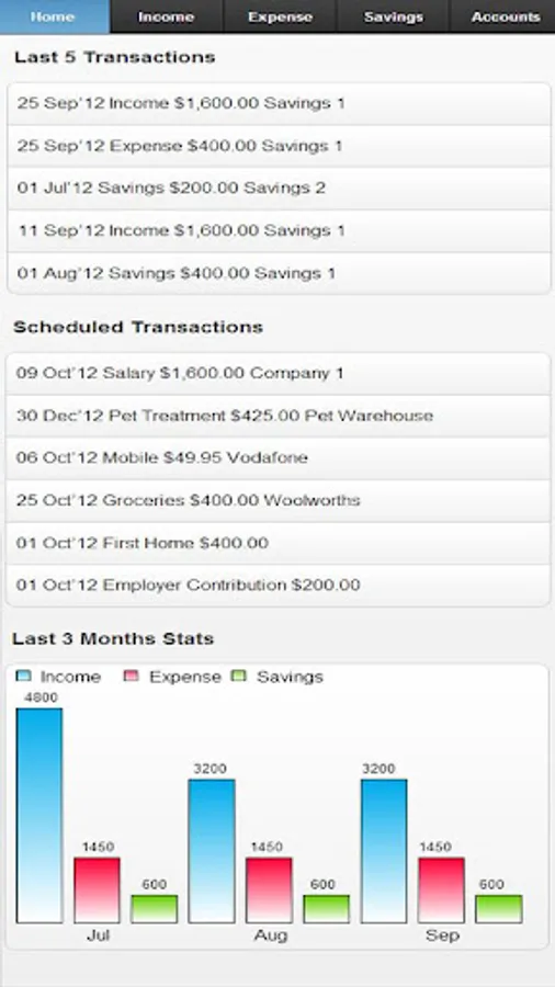 myFinance allows you to manage your income, expenses and savings, schedule repeat transactions, and monitor your monthly spendings with helpful graphs.