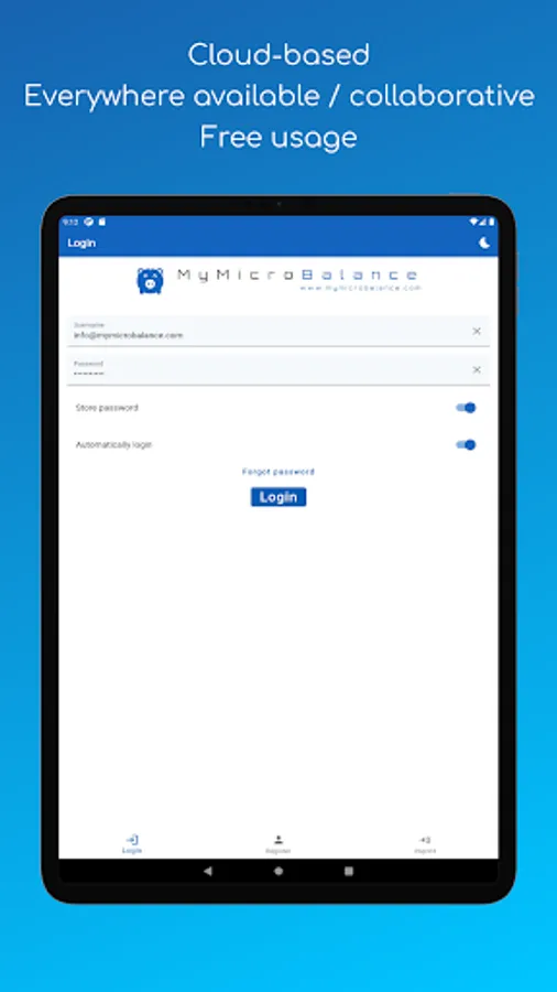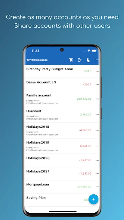* Use MyMicroBalance collaboratively by sharing accounts with others e.g. family