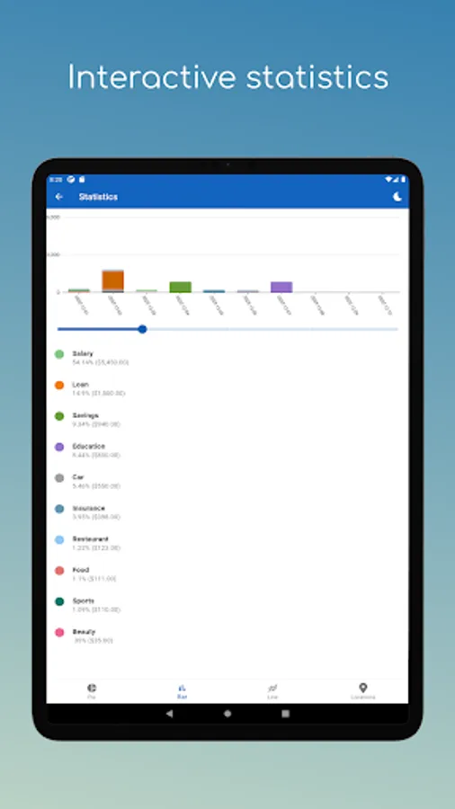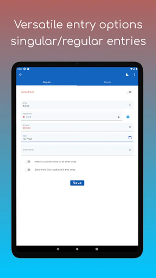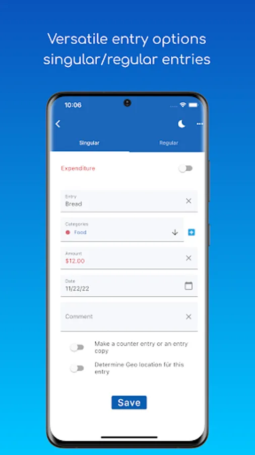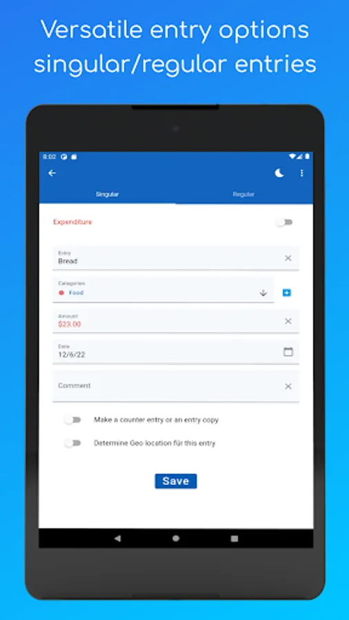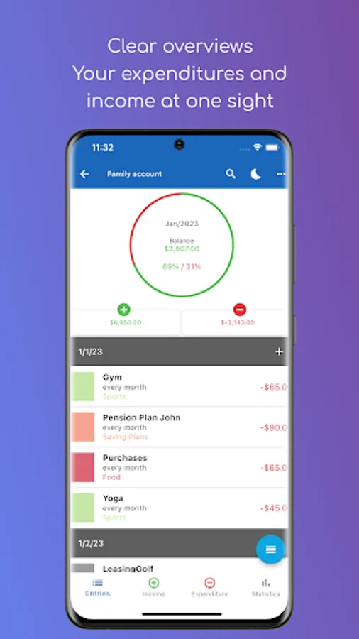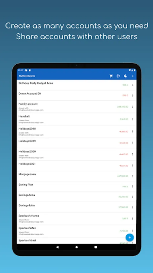 It's all about the monthly rate, isn't it? Yah, but do you really know how much stuff you spend the livelong day? Track your expenses now exactly when and where they occur. Do it on your couch, during lunch time, at the office or at even at the restrooms – check your finances and be up-to-date at any time! This budget planner app has been designed to help you adding new expenses quick and easy, provide powerfull statistics as well as charts and keep you informed about your private financial status at any time. Moreover there is no need to just do it by your own. Share your account with your family, within your club or to a project partner and corporate in keeping track of your money.
