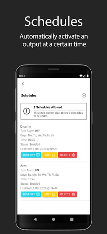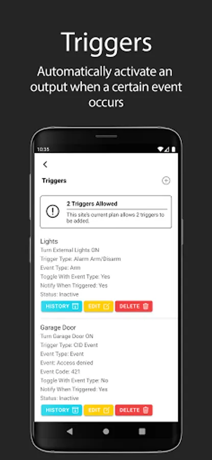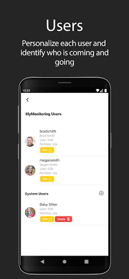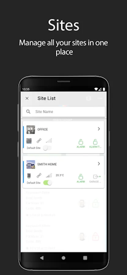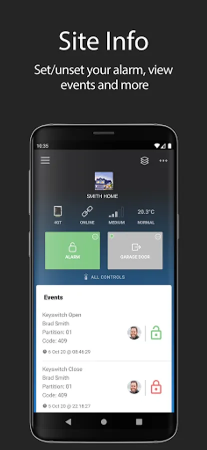 - Manage sites and view events. Identify specific users arming or disarming and other critical information from your alarm system.
