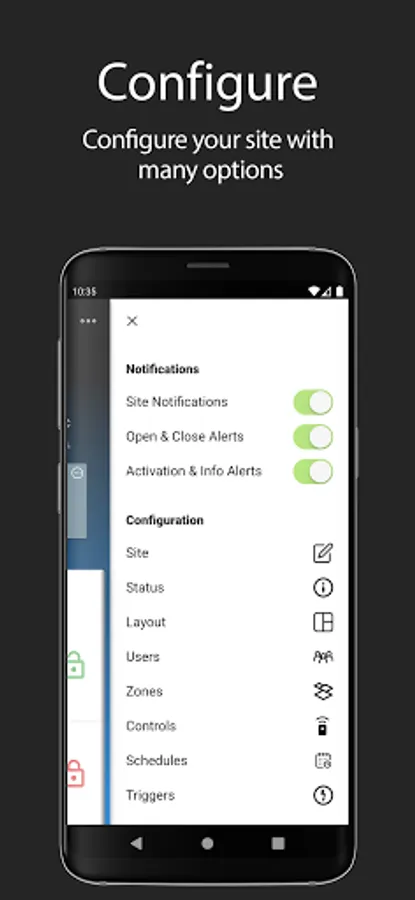 - Receive push notifications when users control outputs, arm or disarm your alarm and alarm activations.