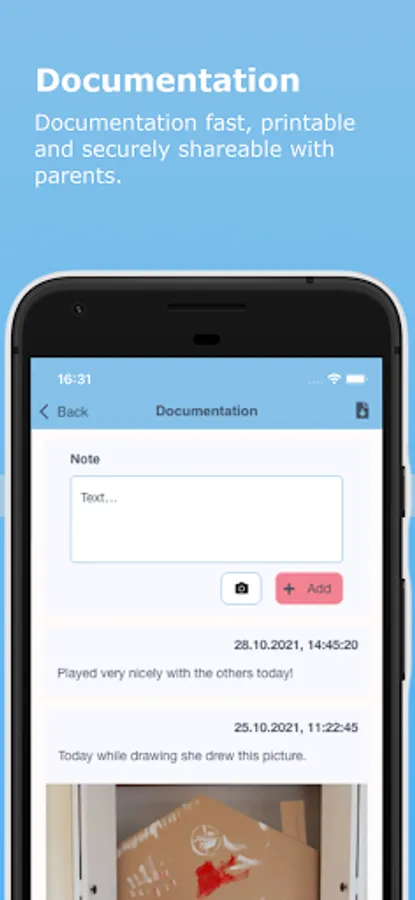 Goodbye to paper work and daily chaos. We help you to keep the overview. Store children information easily and access them in second.