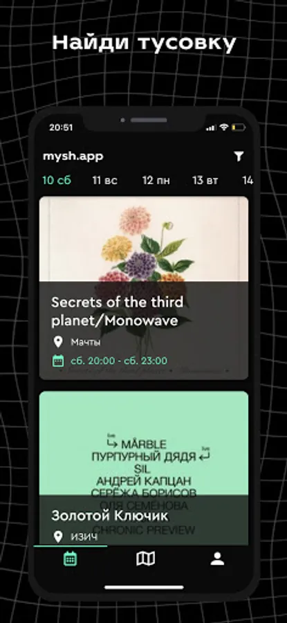 An app to find a place to hangout. Concerts, parties, gigs, you name it.