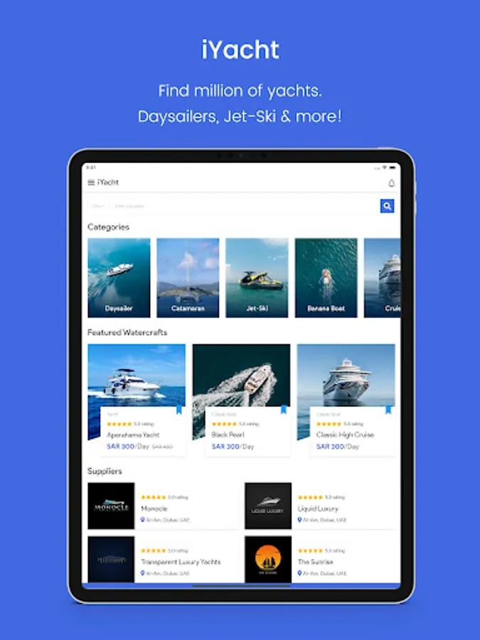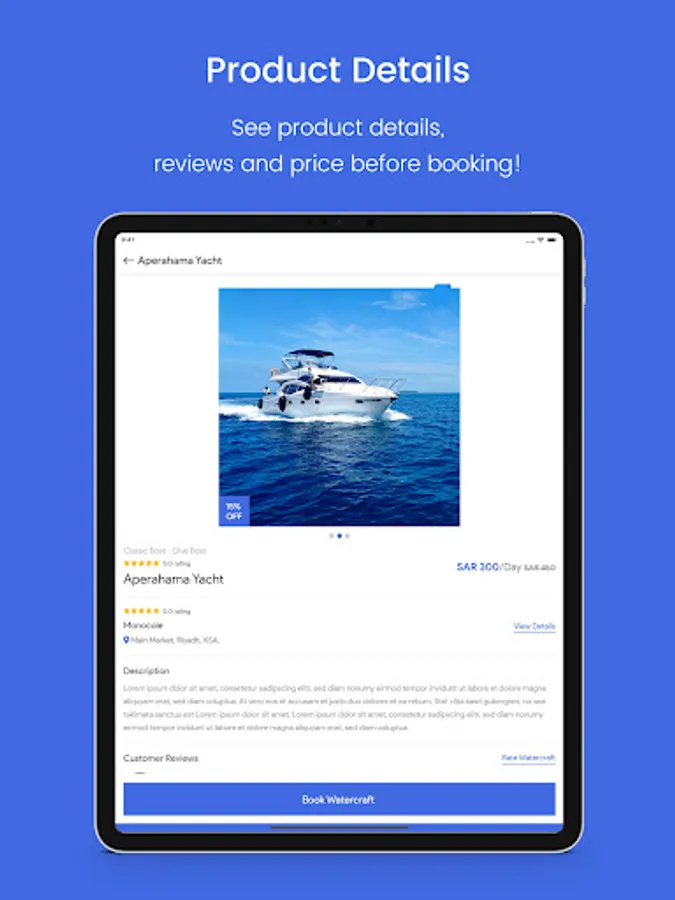 Yacht owners can list their yachts for rentals, customer can search for their desired yachts with the help of various filters and make a booking.