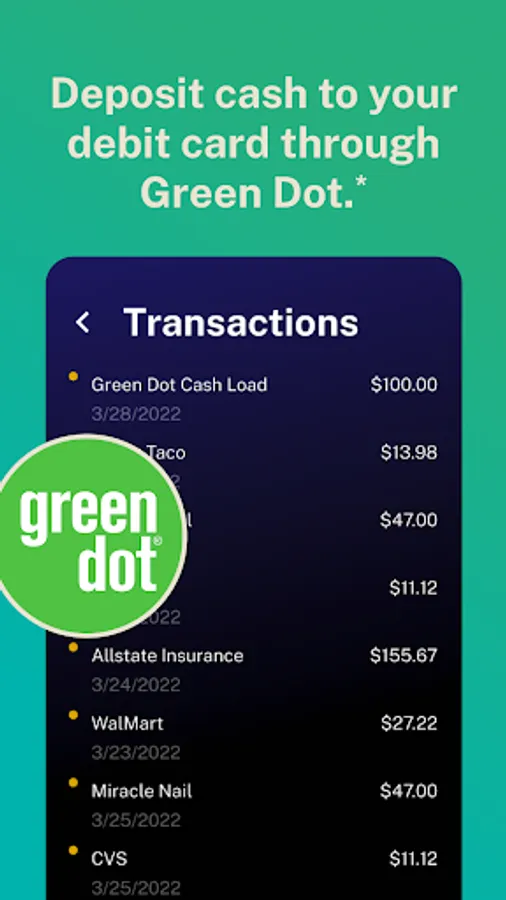 *Retail service fee of up to $4.95 applies. Deposit and card balance limits apply. Active personalized card required. Keep your receipt as proof of your deposit. Green Dot Corporation NMLS #914924; Green Dot Bank NMLS #908739.