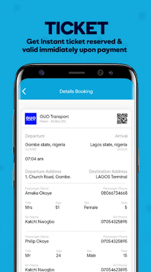 So the good news is Nigerians no longer have to go through all the stigma of counter ques and delays, kill the stress, kill the Que, Mytrip.ng is the smartest way to travel around Nigeria, all you need do is download this app, register on the app, search your route, compare trips from multiple bus operators, reserve a seat, pay with ATM and afterwards travel in style. Furthermore the booking details will be forwarded to your email as inputted during registration, as also available in the "My bookings" section of the app, these information is vital for on-boarding.