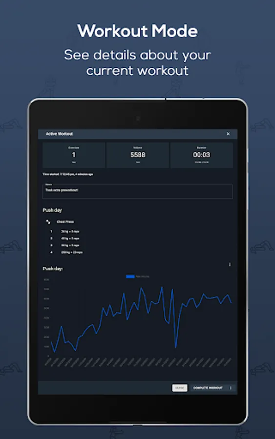 - Get real-time workout duration, volume, and exercises done during your workout.