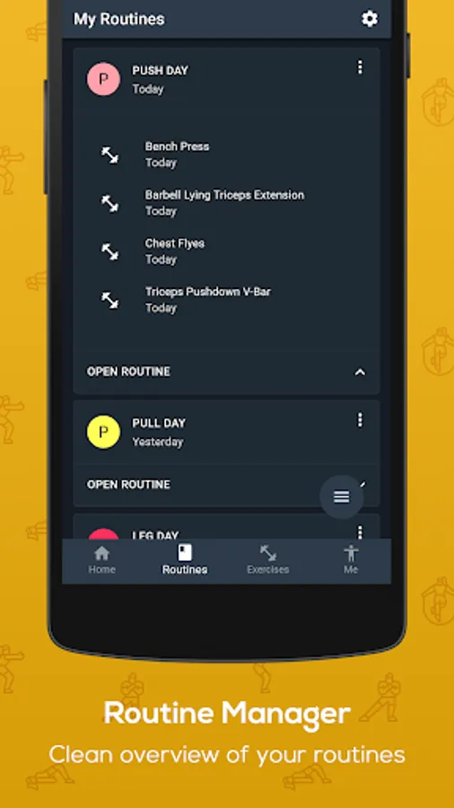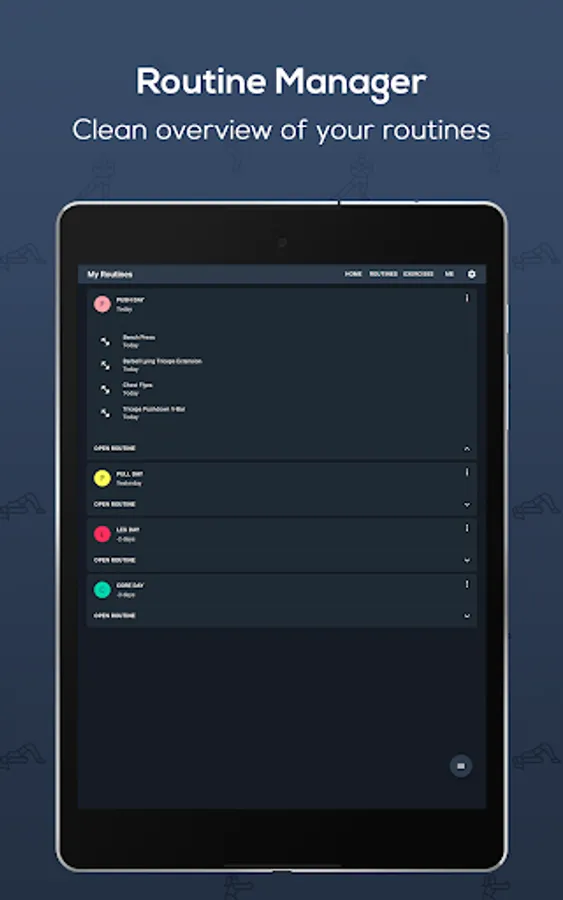 - Clean and intuitive overview of all your routines and exercises.