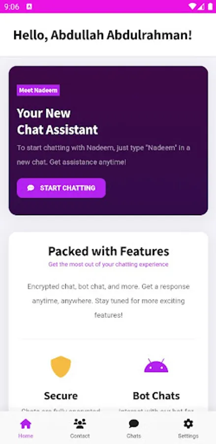 With Nadeem, your security and privacy are our utmost priority. Our unique chat application guarantees that no critical user information, such as passwords, emails, or usernames, is stored in our system. We collect only necessary information to facilitate seamless communication and maintain the functionality of the app.