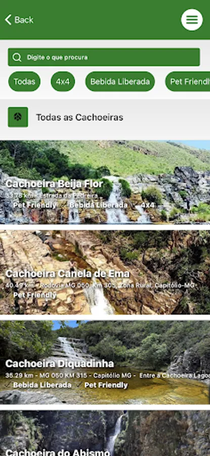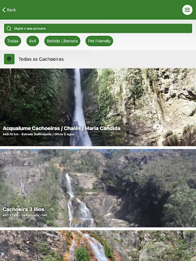 Our application has more than 400 waterfalls mapped, in addition to restaurants, inns, tours, tourist attractions and a complete schedule of events.