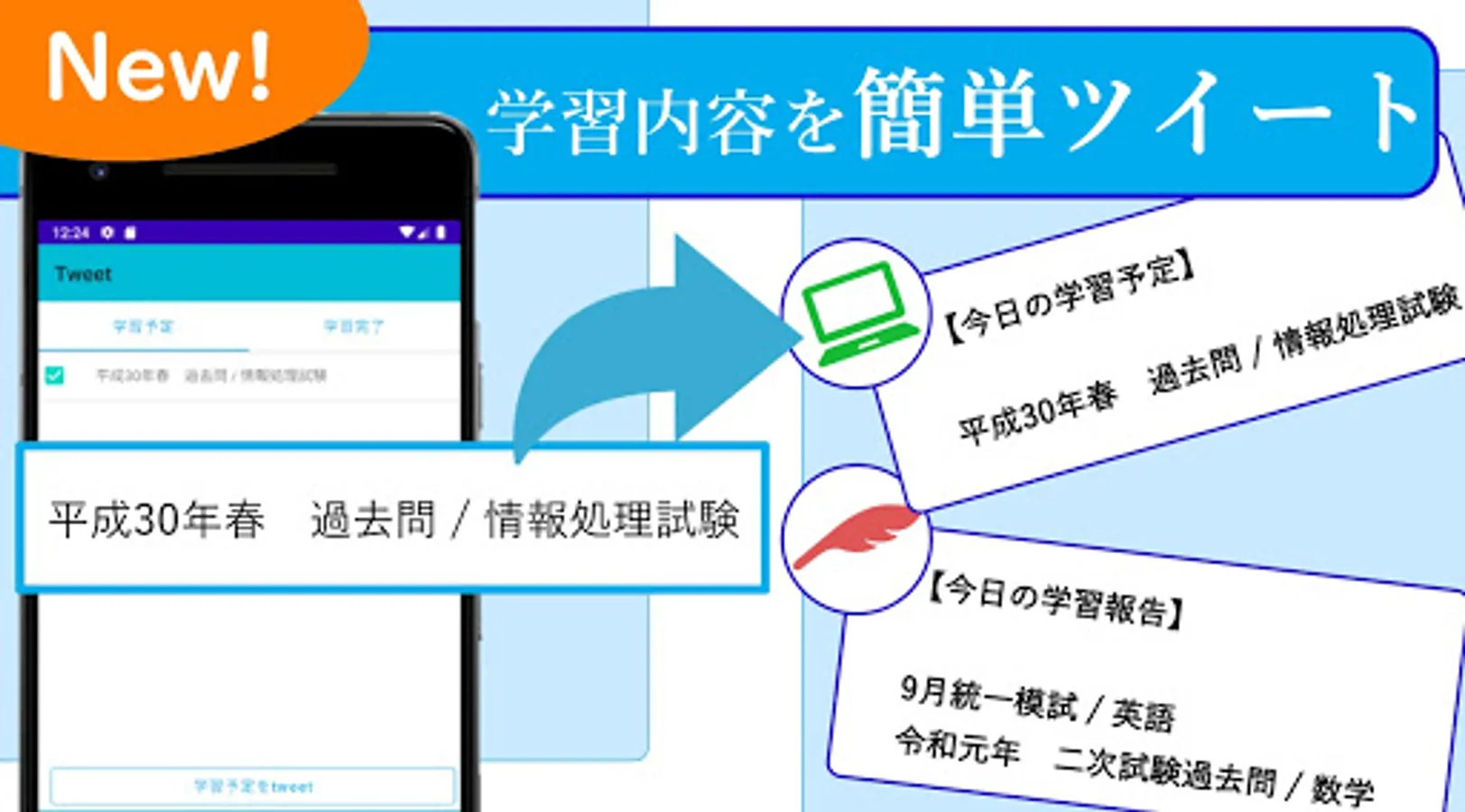 It also has a posting function on Twitter! You can post today's study schedule and study report with the touch of a button.
