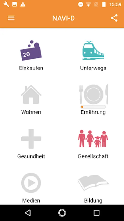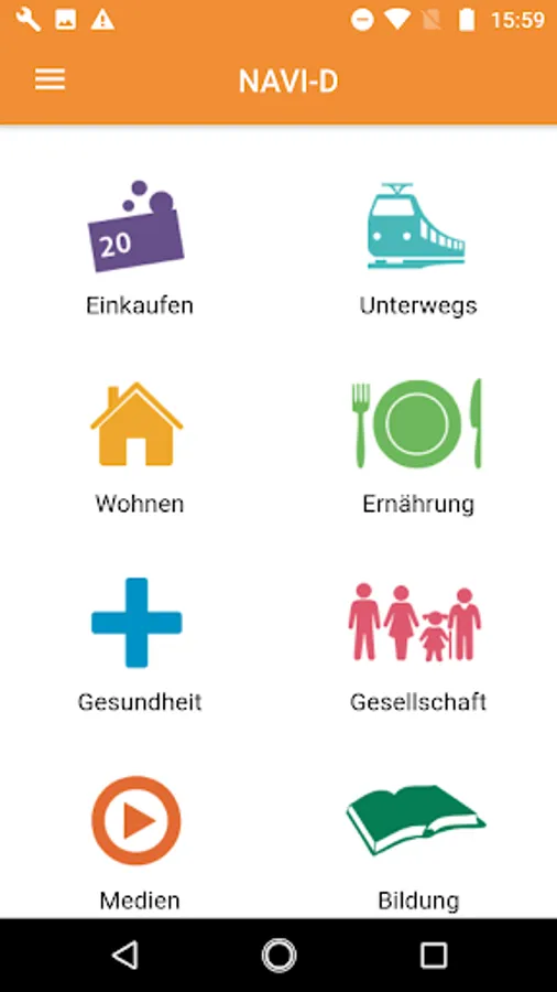 The app navigates immigrants cleverly and low-threshold through everyday life. It supports integration by informing, educating and providing concrete communication assistance. Through numerous motivational exercises NAVI-D ensures a true understanding of the learning content.