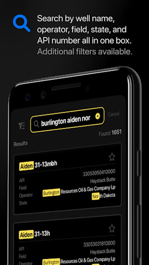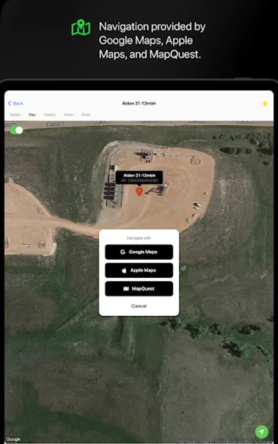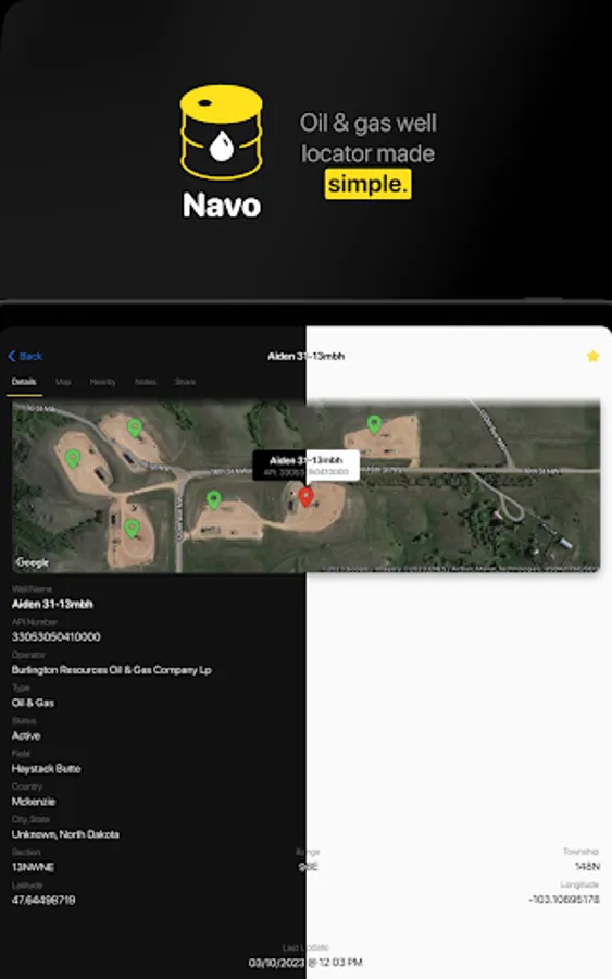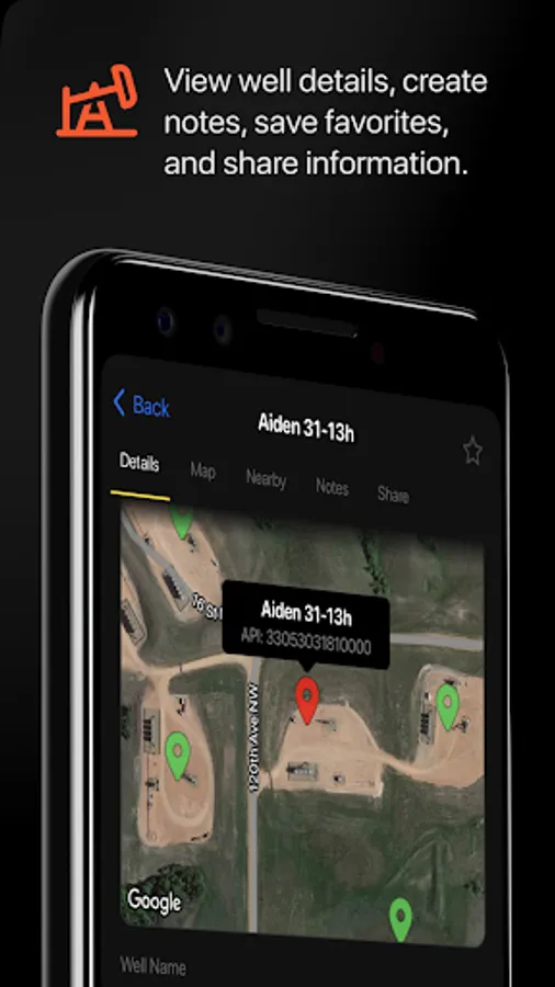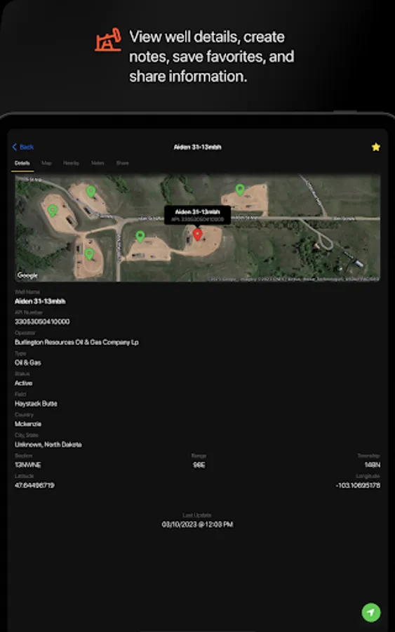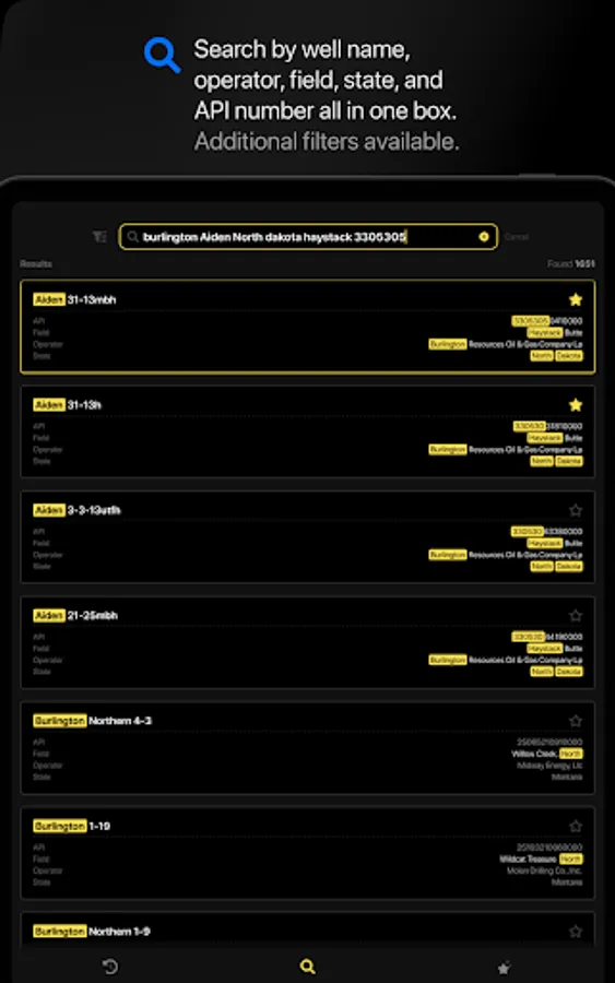 Quickly search and filter well site data. Begin navigation or Share information for others to navigate.
