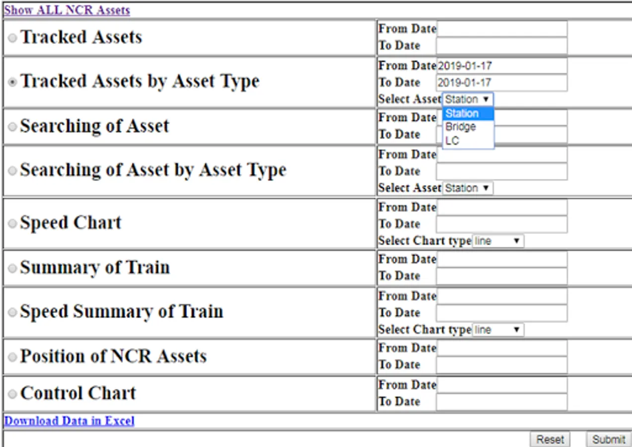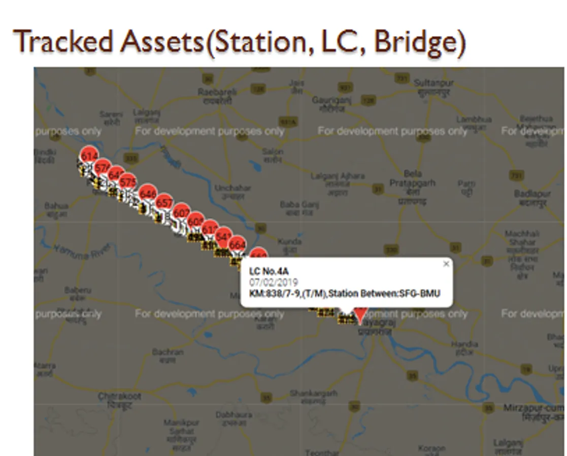 Tracking of Live/Real time position of Locomotives / Train with NCR Assets(Station/LC/Bridge)