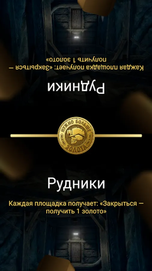 "More Gold" is a strategy board game for 2 people in which there is a confrontation between cities. The tactical element makes the game unique - the influence on the process of movement of cards on the Battlefield.