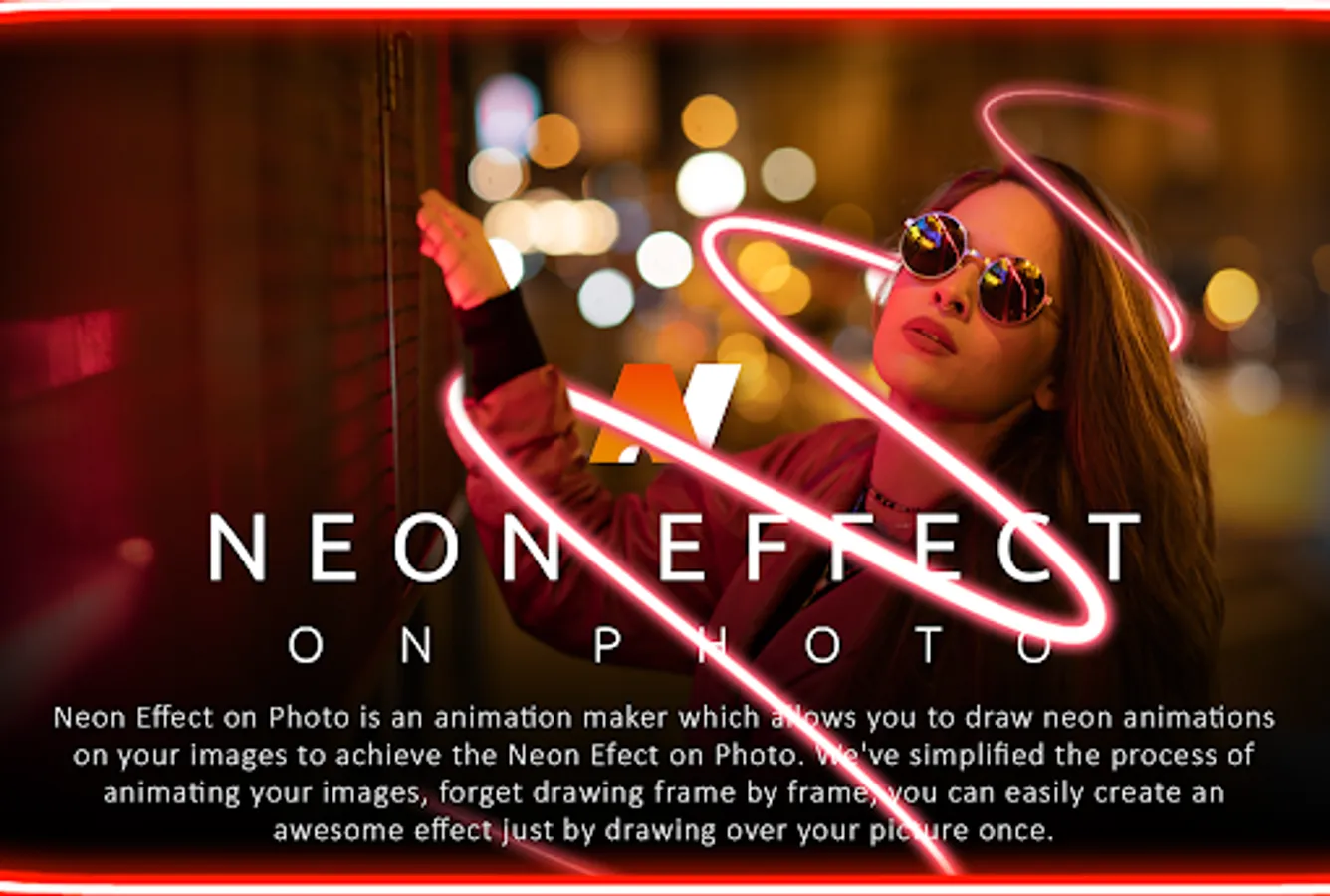 Neon Effect On Photo -Neon Animation is an animation maker which allows you to draw animations on your images to achieve the Neon Animation effect. We've simplified the process of animating your images, forget drawing frame by frame, you can easily create an awesome effect just by drawing over your picture once.