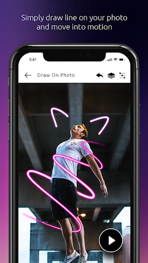 Neon effect on photo gives you a wide variety of tools and lets you decide which animations you want on your photos. With different animation effects you have all the control on what effect you want on your pics. Don't like an effect you've drawn? No problem, just choose the path in the layers option and edit it without drawing it all over again!