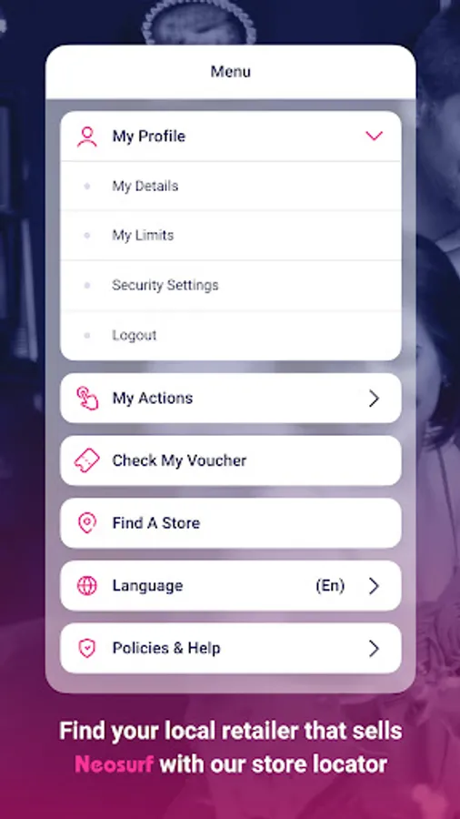 Welcome to our brand-new App. Stay up to date on all the latest exclusive merchant promotions and cash giveaways. Register with MyNeosurf and pay with cash online on more than 20,000 websites or locate your nearest store to purchase your Neosurf.