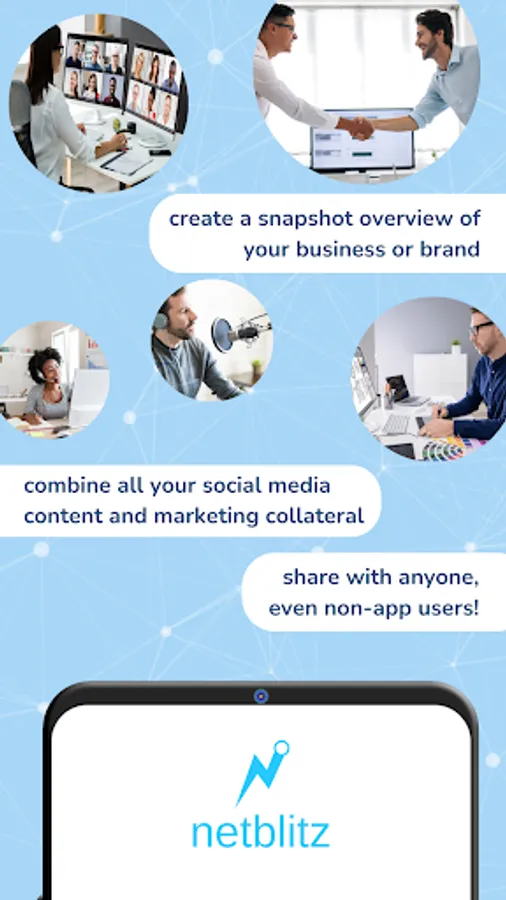 • People who don’t have the Netblitz app can still download a digital image of your portal or add the information to their phone contacts.
