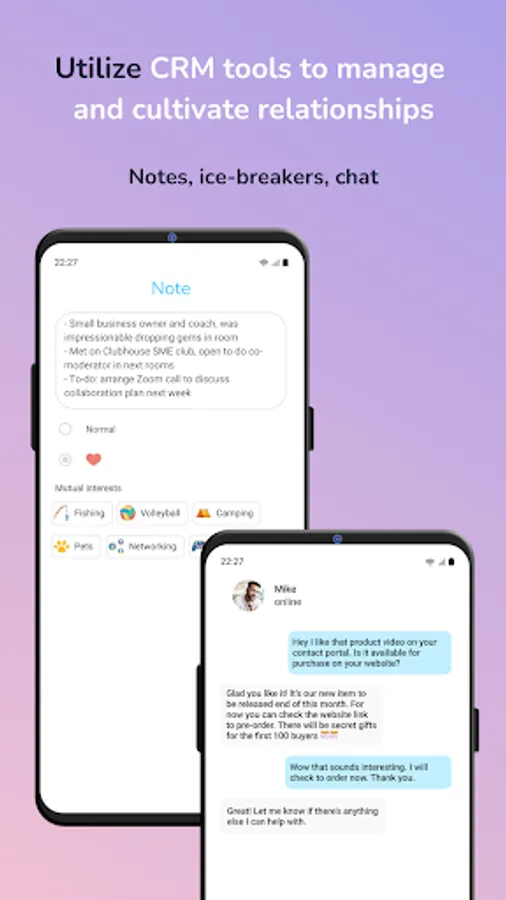 • Use our mutual interests and comemo features as fun ice-breakers to establish rapport with new contacts.