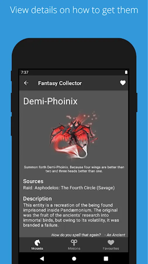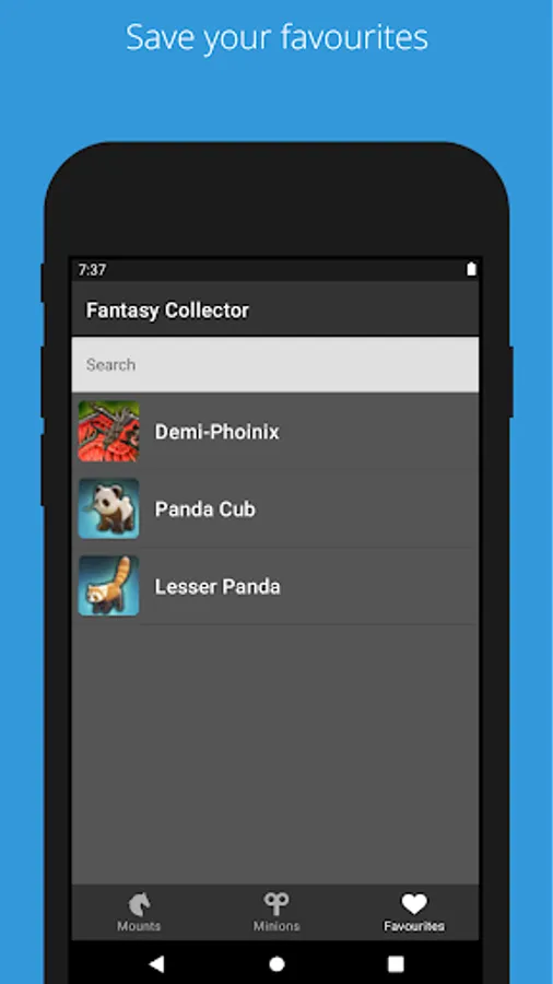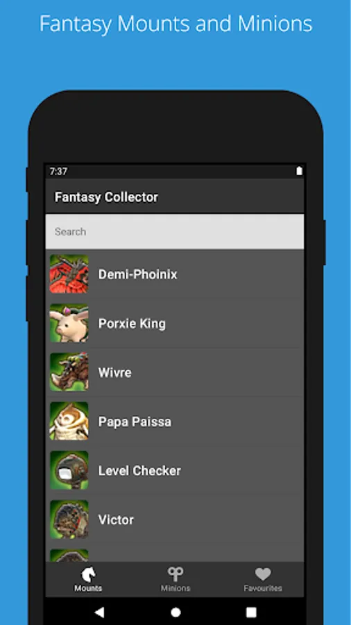 Fantasy Collector is a collection of all mounts and minions from a popular MMORPG whom we shall not name.