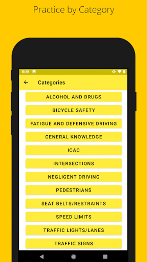 Learners Lab also let's you to practice questions by category. Identify what categories you need the most help on and focus on your weaknesses! All questions and answers are always shuffled, giving you different experiences each time you take the test!