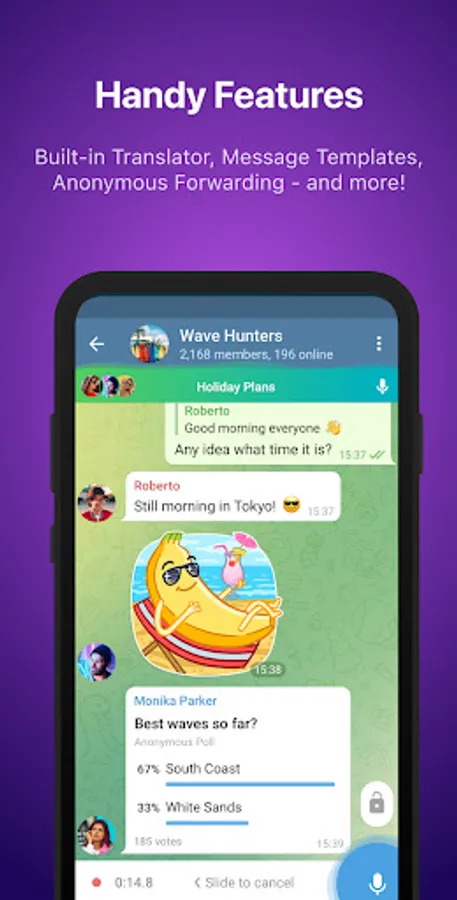 - Built-in Translator: instantly translate both incoming and outgoing messages without having to leave the chat! This unmissable feature supports all languages!