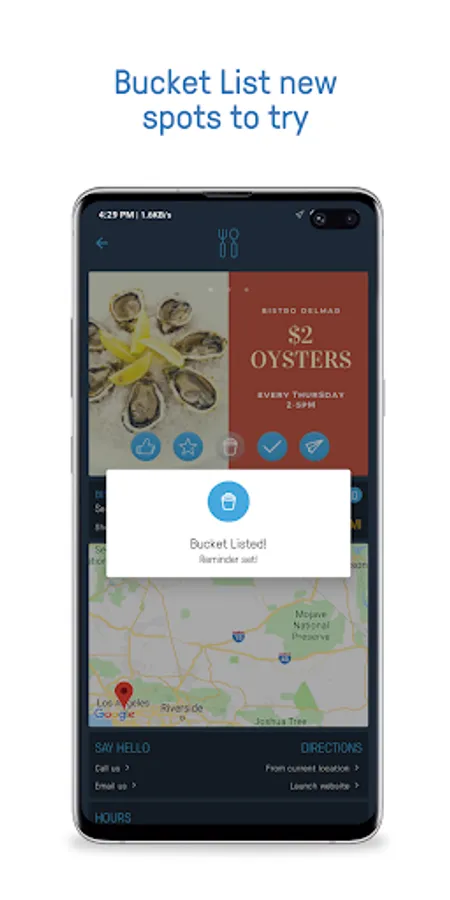 • Bucket List (aka 'bookmark') a business to be nudged on your Android phone, tablet or watch any time you happen to be in the neighborhood