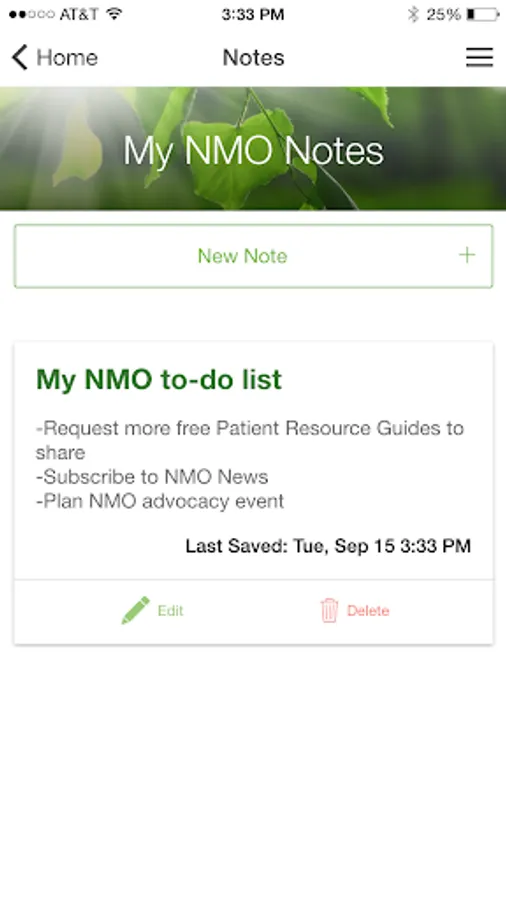 - My NMO Notes - Keep all of your NMO related notes and thoughts in one place.