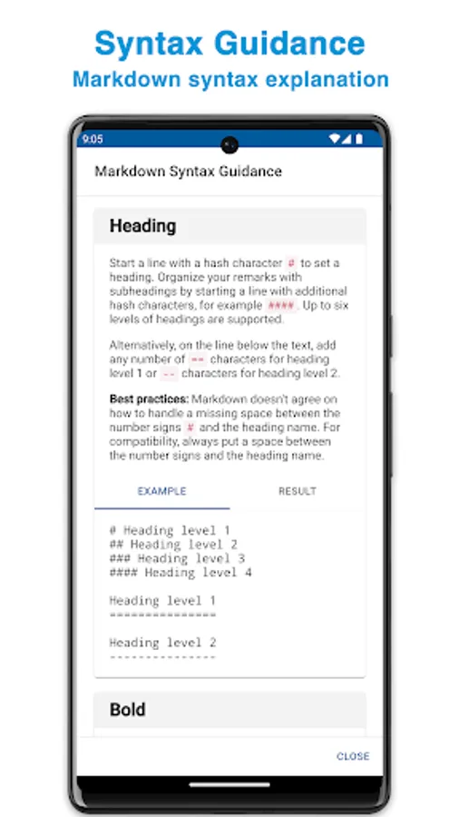 - Markdown syntax guidance