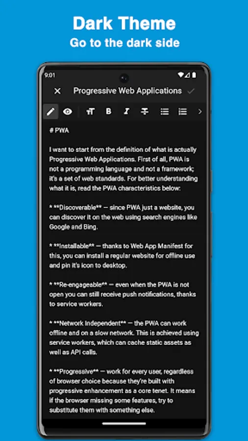 Use the power of Markdown to format your notes, and create tables, lists, images, etc. Markdown will help to keep your notes in the same style regardless if you copied text from the internet or wrote from scratch, so no more different font faces, font sizes, or colors.