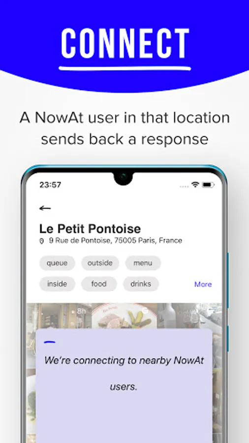 NowAt is a socialised search platform that gives you access to in-the-moment information about any location.