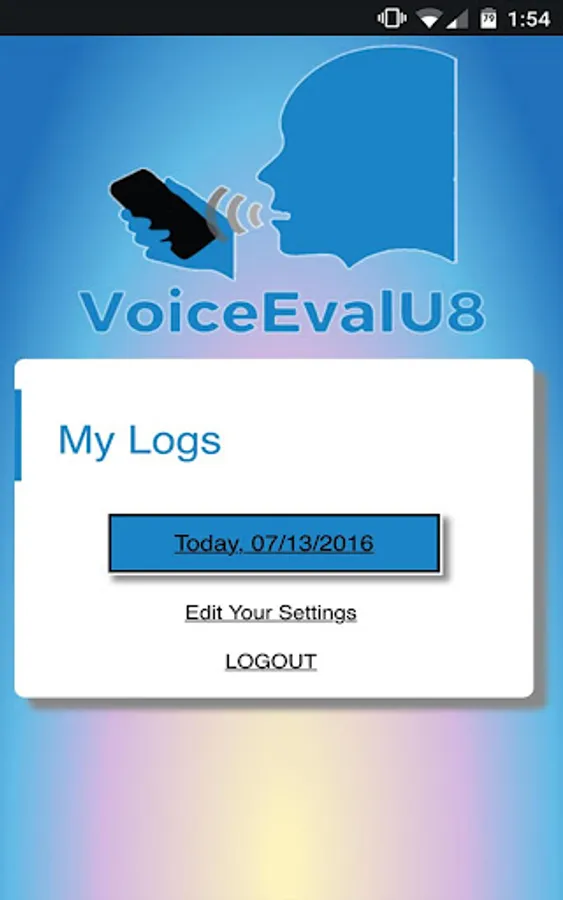 The purpose of the application is to collect voice information from users. The app will prompt users to complete a variety of audio recordings and answer voice-related questions. This information will then be analyzed to determine if potential voice issues exist and to develop a plan for such issues.