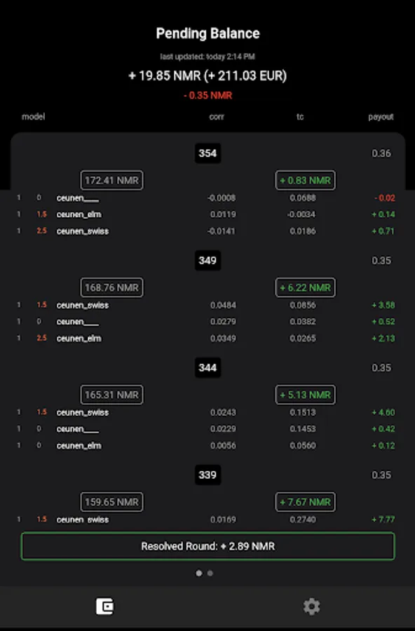 It's not so easy to keep track of the pending payouts on Numerai if you have multiple models. Numerai Payouts will help you visualize the performance and pending payouts of all your active models on Numerai. It's possible to add your models through api keys or add them manually yourself.