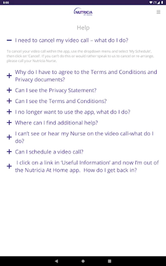 Nutricia At Home allows users of the Nutricia Homeward Service in Australia and New Zealand to receive video calls from their Nutricia Homeward Enteral Nurse Specialist, offering a convenient method of staying in touch with each other.