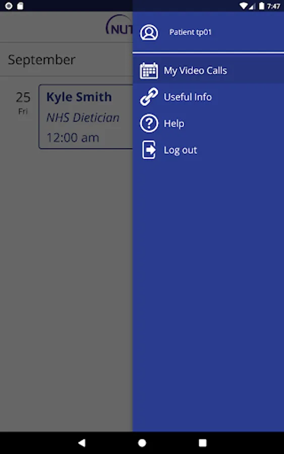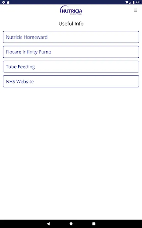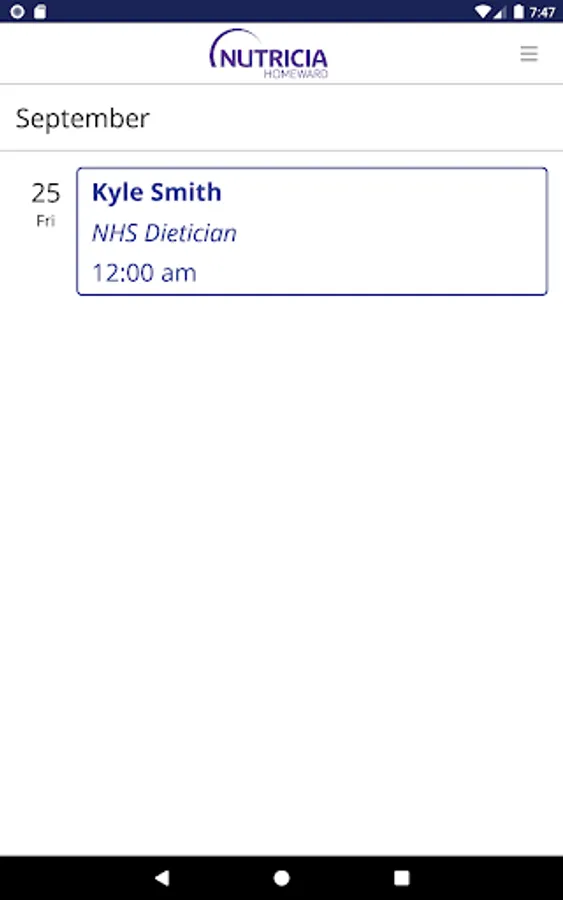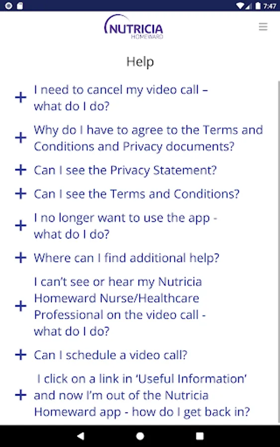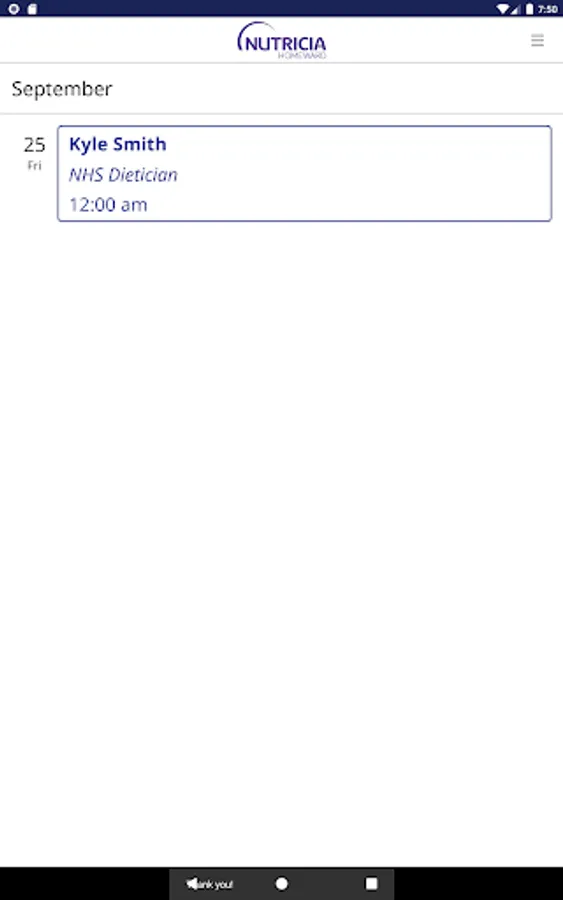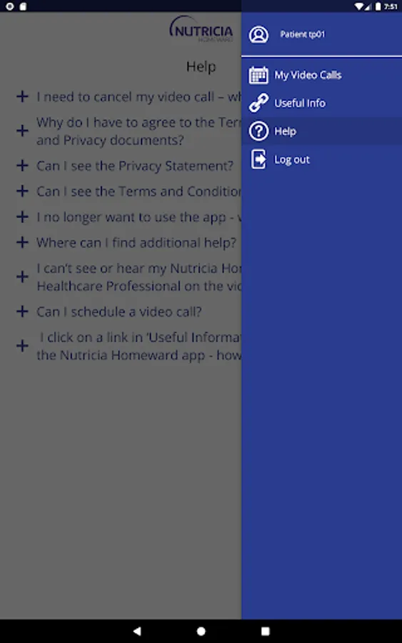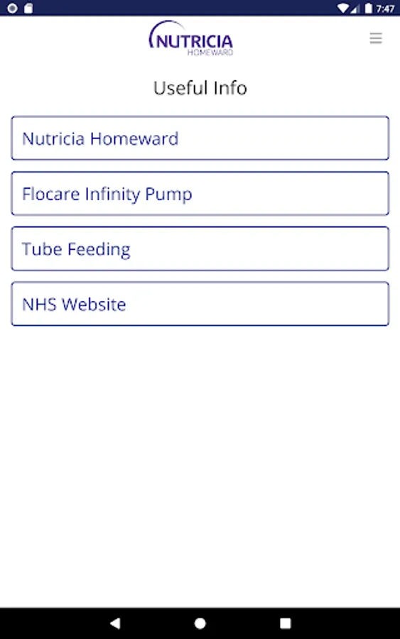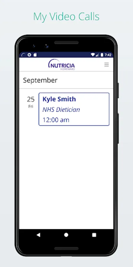 The Nutricia Homeward App allows users of the Nutricia Homeward Service to receive video calls from their Nutricia Homeward Nurse or managing healthcare professional. You can view your video call appointments with ease and cancel if you're unable to attend. To get started, ask your Nutricia Homeward Nurse for your unique ID number that will allow you to access the App. Healthcare Professionals who wish to use this App please speak to your local Contract Account Manager. Further information on the App and Nutricia Homeward can be found at nutriciahomeward.co.uk. The Nutricia Homeward privacy policy can be found at https://storage.googleapis.com/nutricia-homeward-legal/privacy.html