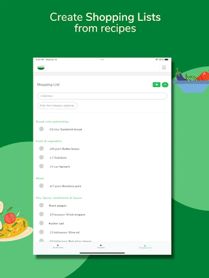 - The ability to purchase your shopping list on Instacart and AmazonFresh