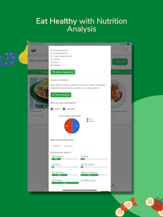 - Automatically scale recipes to the number of people in your household and your dietary requirements