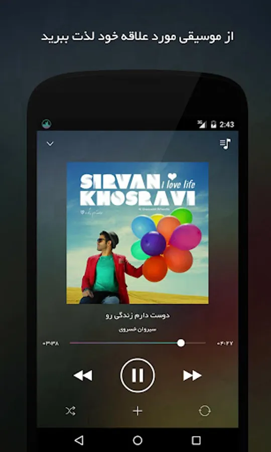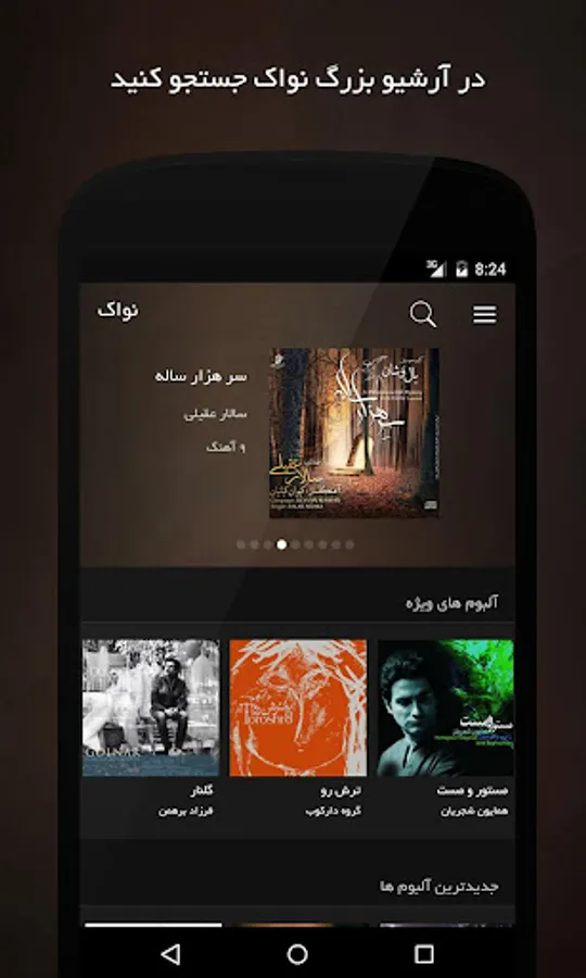 Navaak is a new way to listen to music. It's always with you in your pocket, in your home or even in your car, having the whole Iranian music archive available. With Navaak there's always a new favorite song for you to discover and share with your friends. So what's your next favorite song?