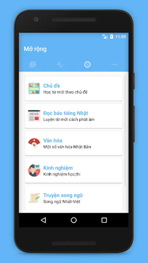 - Học tiếng nhật với nhiều mức độ khác nhau từ bảng chữ cái đến các cấp độ sơ cấp,trung cấp,thượng cấp.