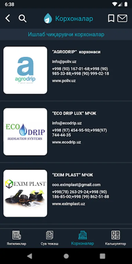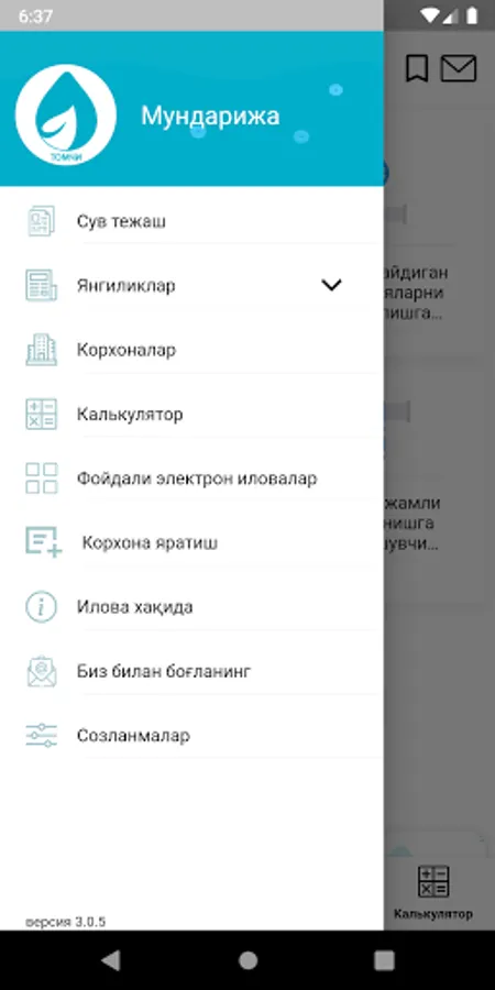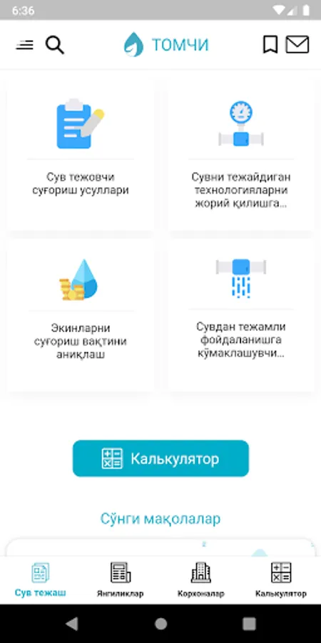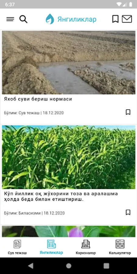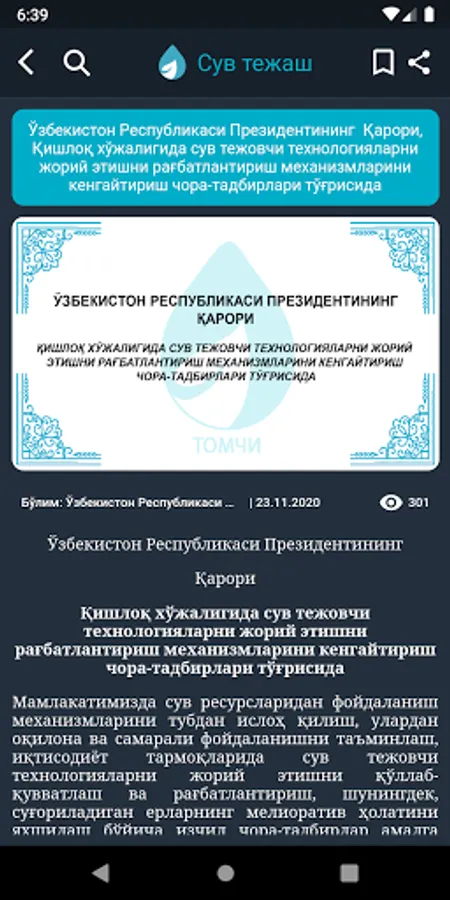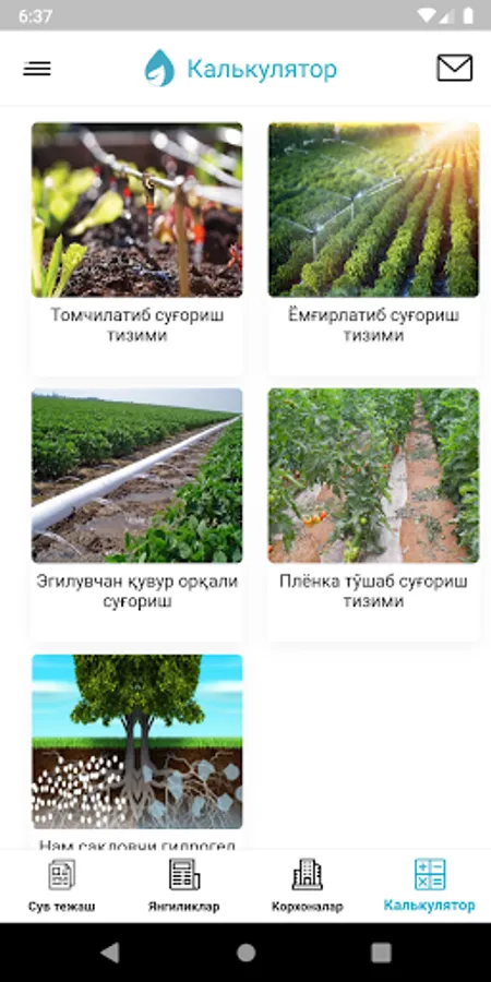 Mobil ilovadagi malamotlar suv hгиzhaligi yhodlari va farmerlar malakasini oshirish masadid and shlab chіlgan materiallard kamda boshқa manbalar asosida tayerlangan.