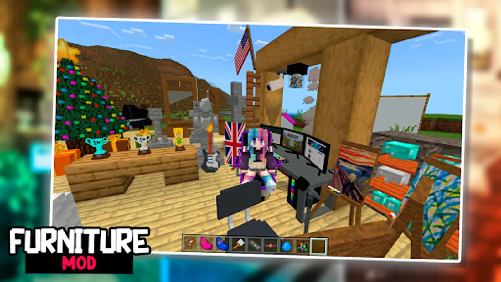 Customize your beautiful and modern house or neighborhood with amazing furniture to choose from. Furniture is great to build with and roleplay and decorate your home like never before with brand new furniture! Get friends together to role-play as an awesome Minecraft appliance store complete with a fridge, television, notebook, laptop, game console, All furniture is functional and has realistic sound effects. air conditioner, wardobe Ceiling lamp, office chair, dishwasher, and washing machine. You can furnish your home in the way you want, believe me, you will love it